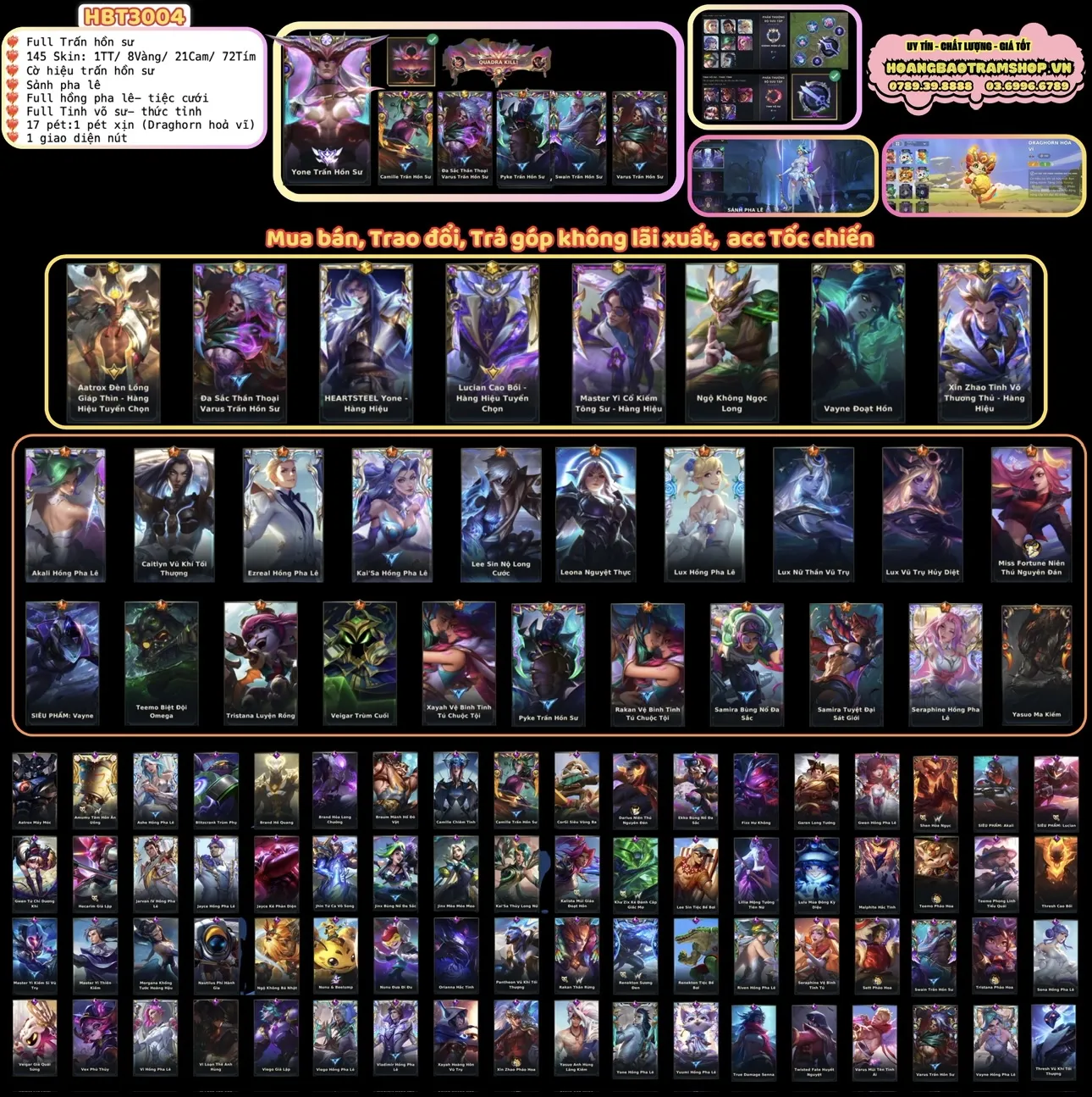 | 145 Skin | 1TT/ 8Vàng/21Cam/ 72Tím |