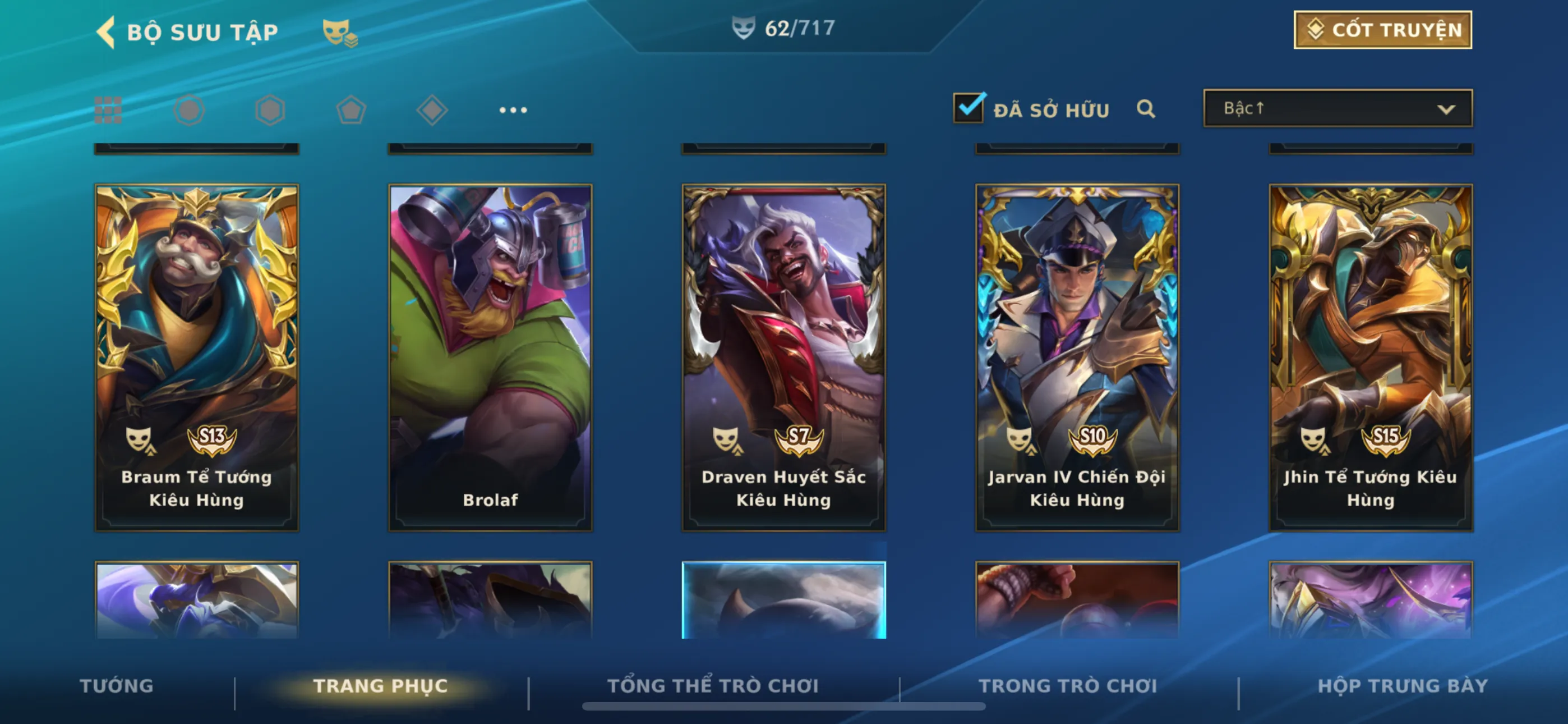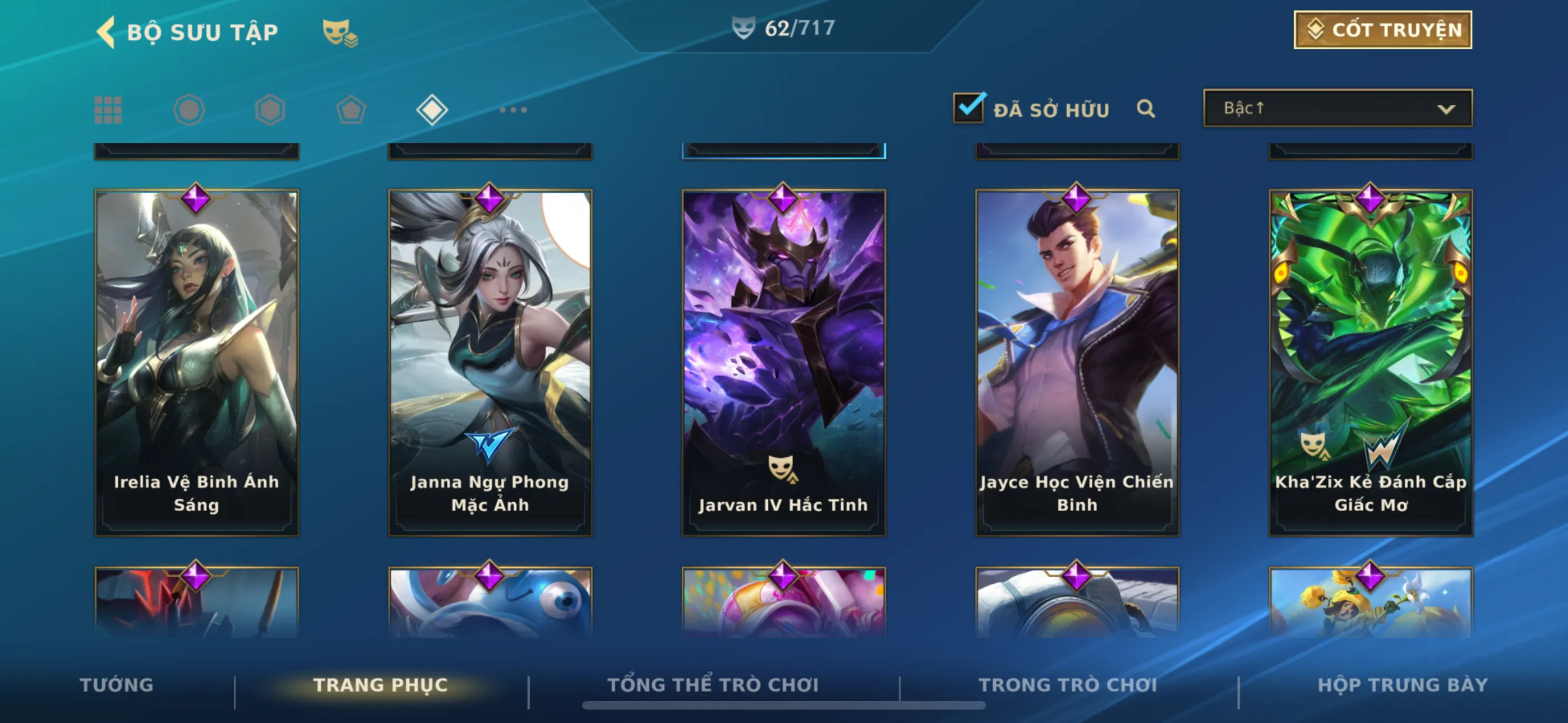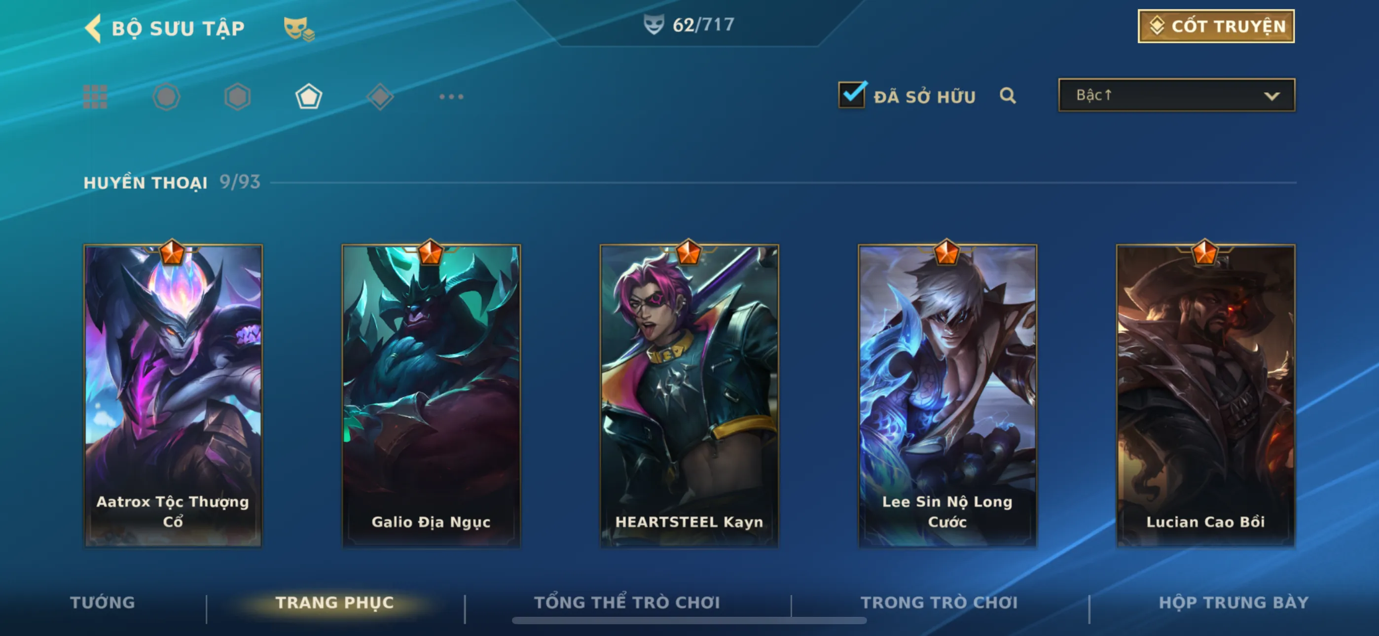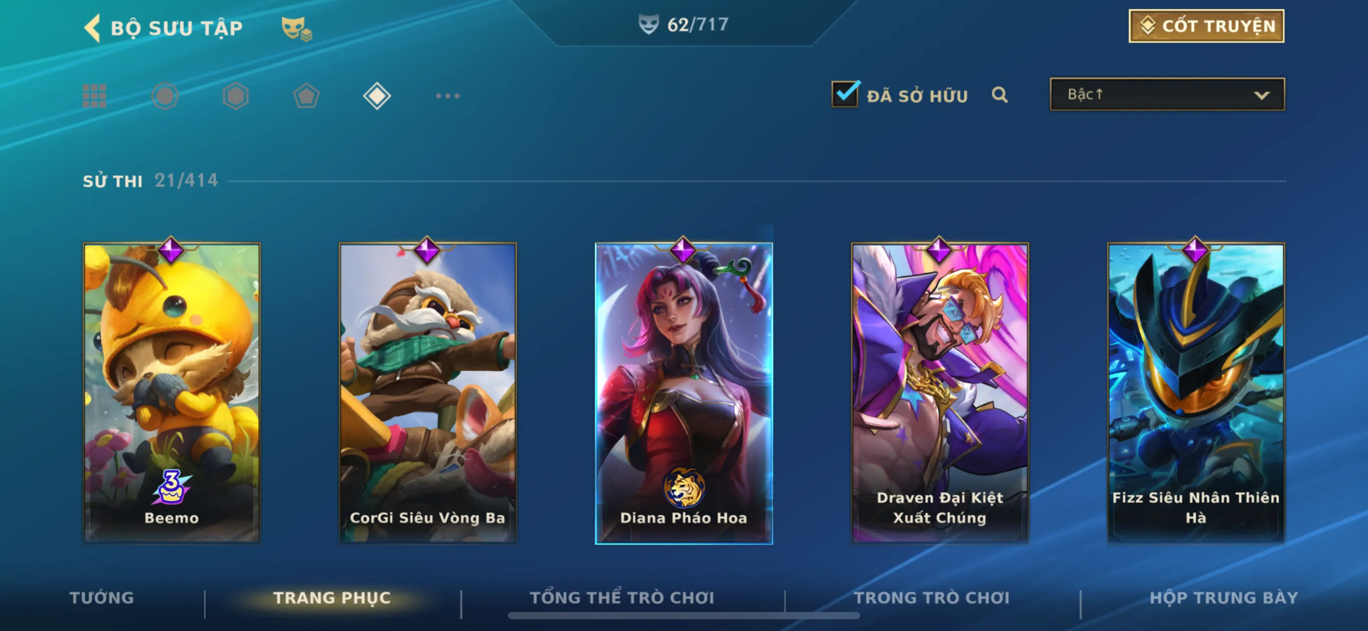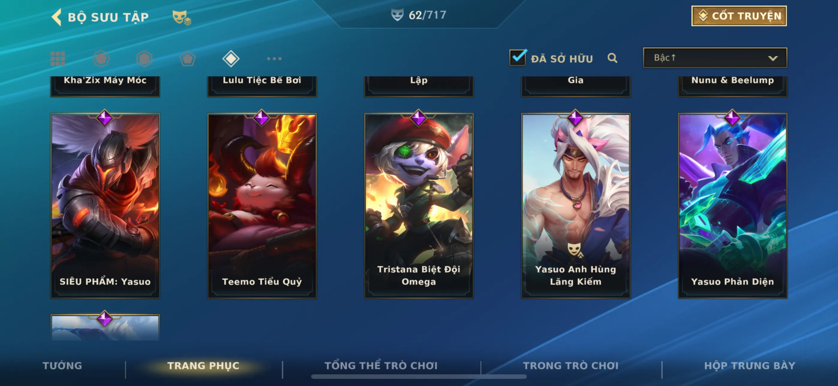Tổng 185 Skin/6 vàng/27 cam/87 tím.