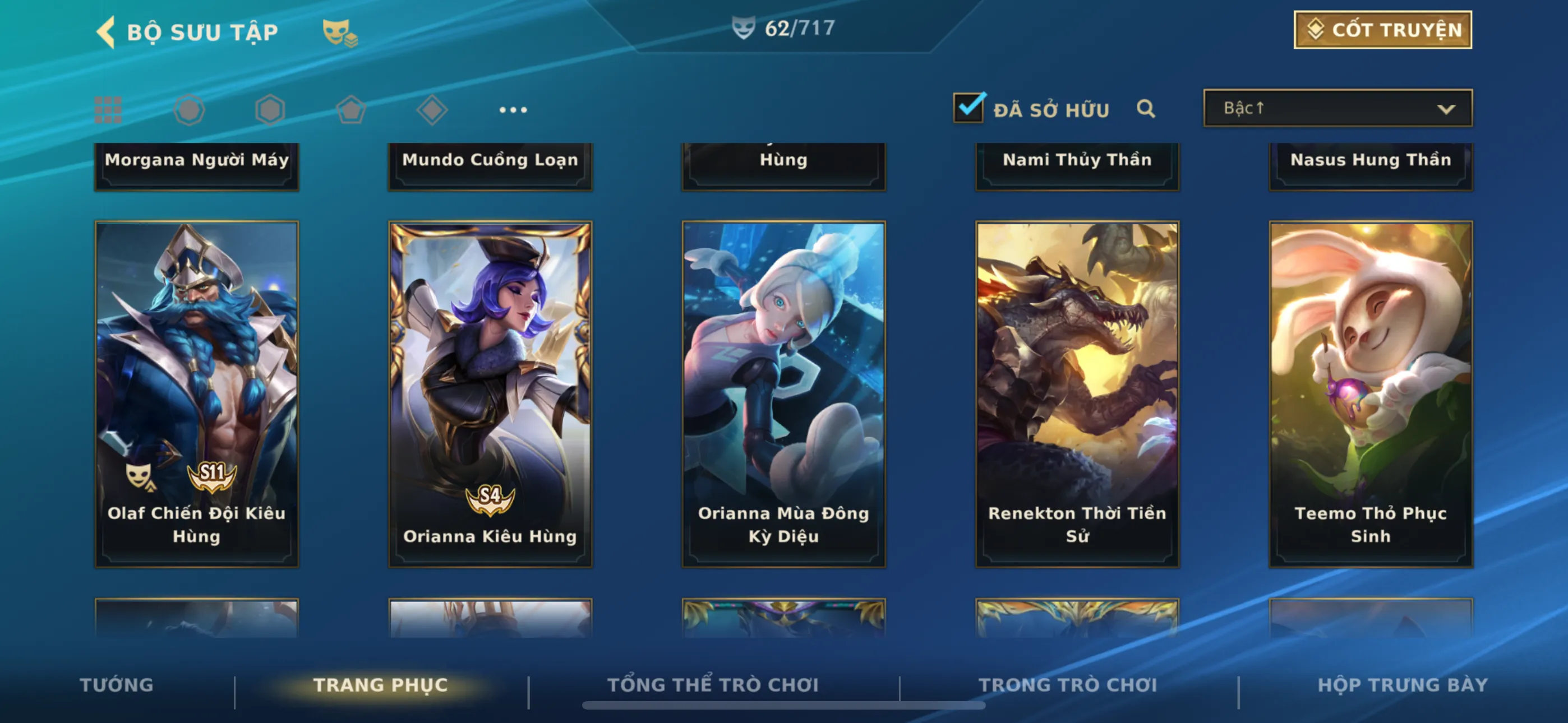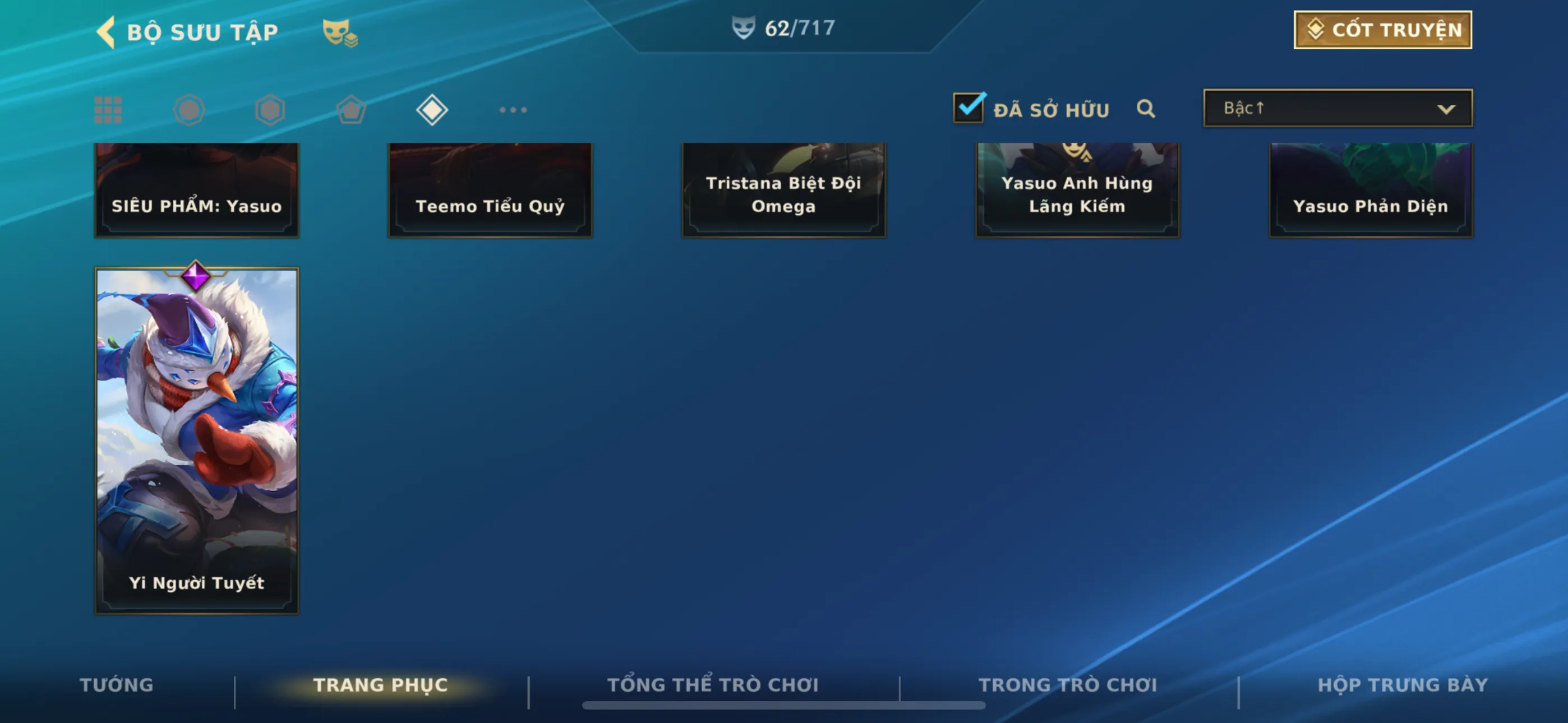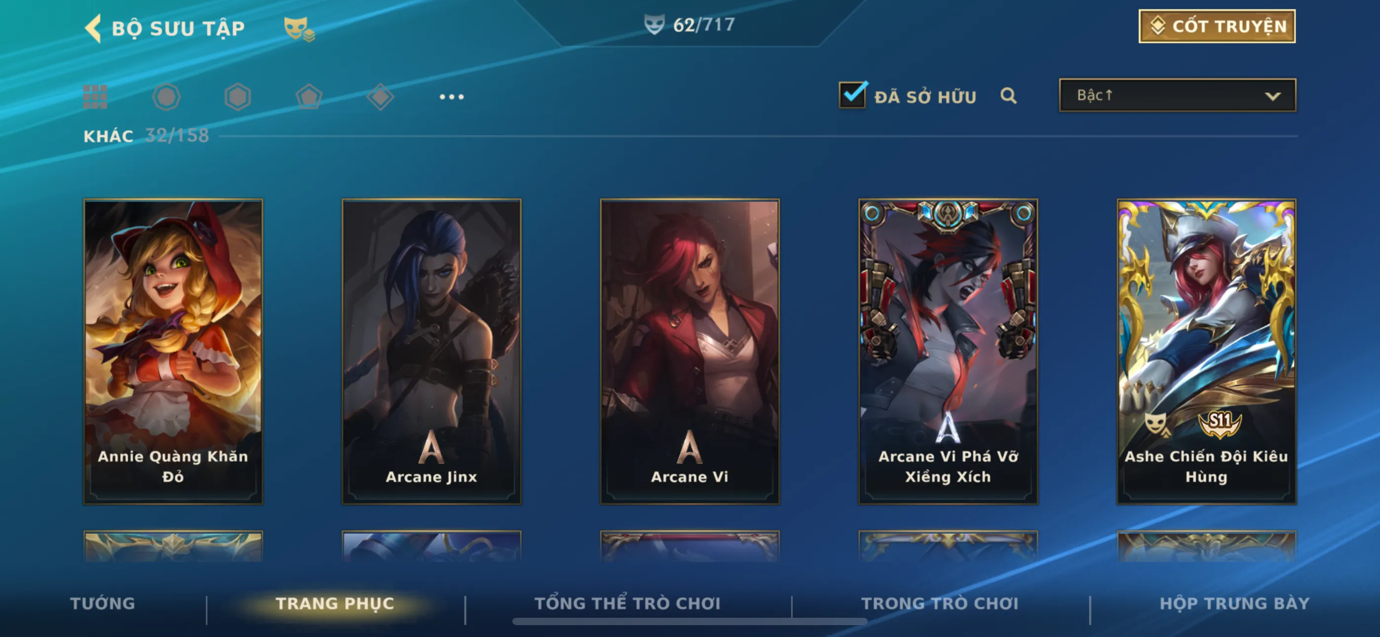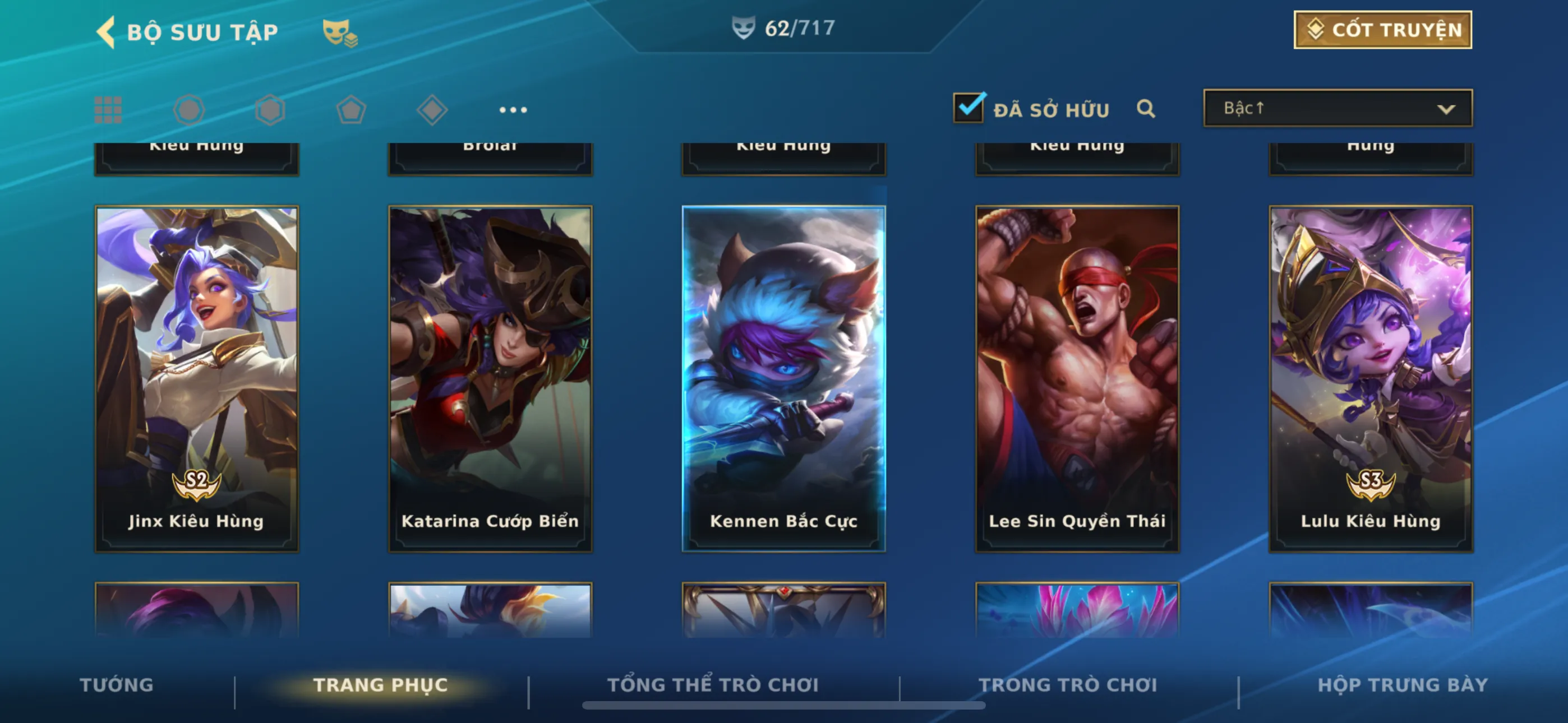 Tổng 185 Skin/6 vàng/27 cam/87 tím.