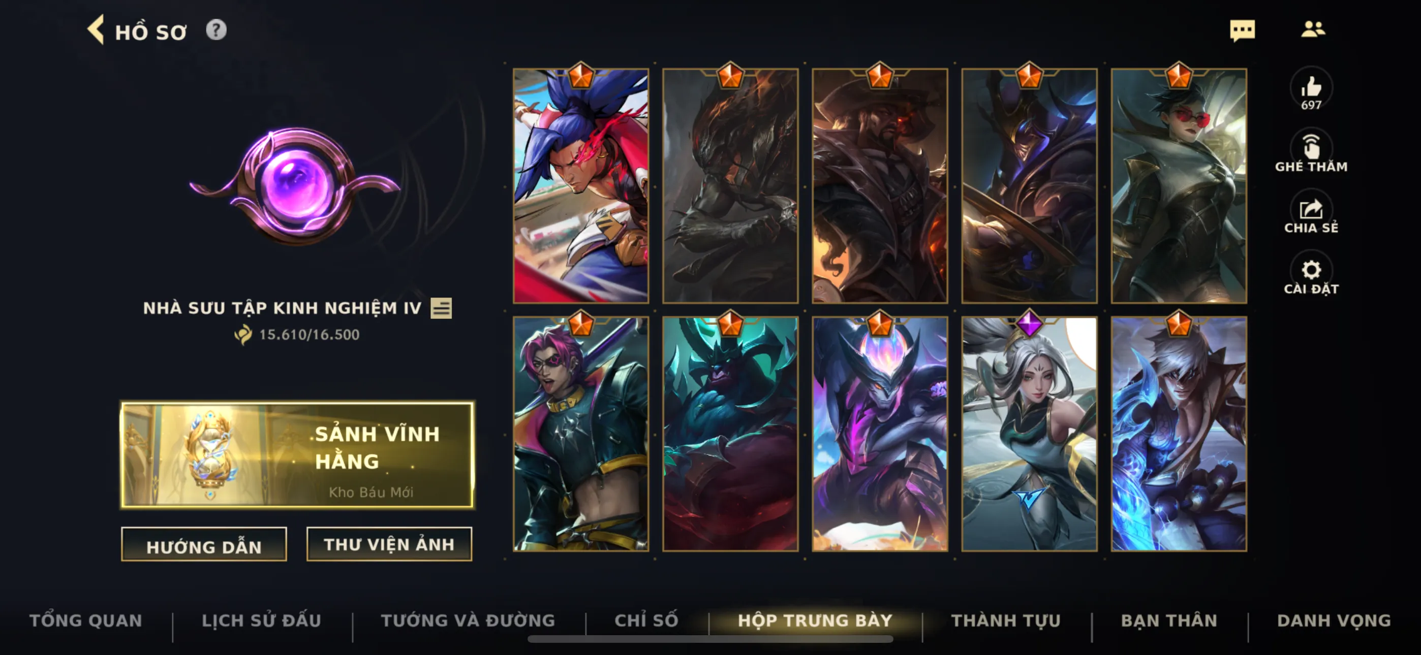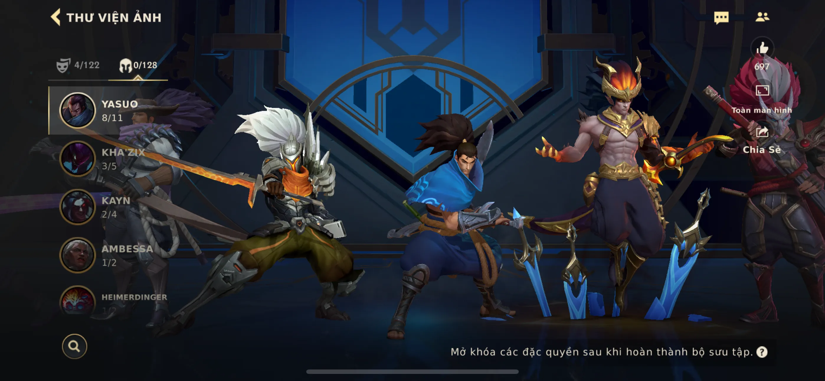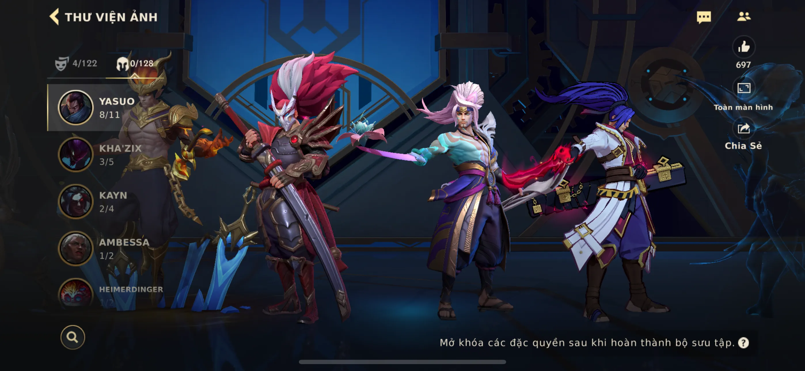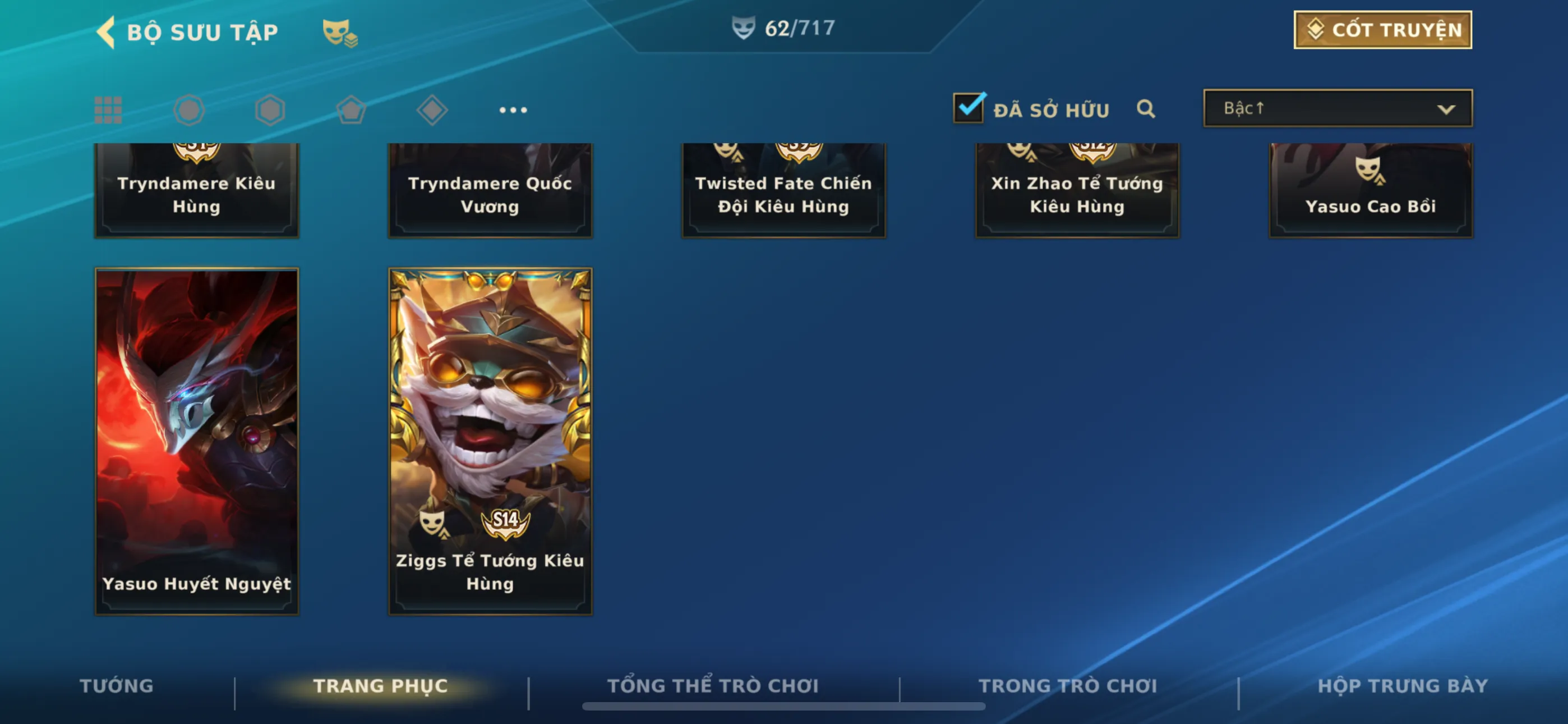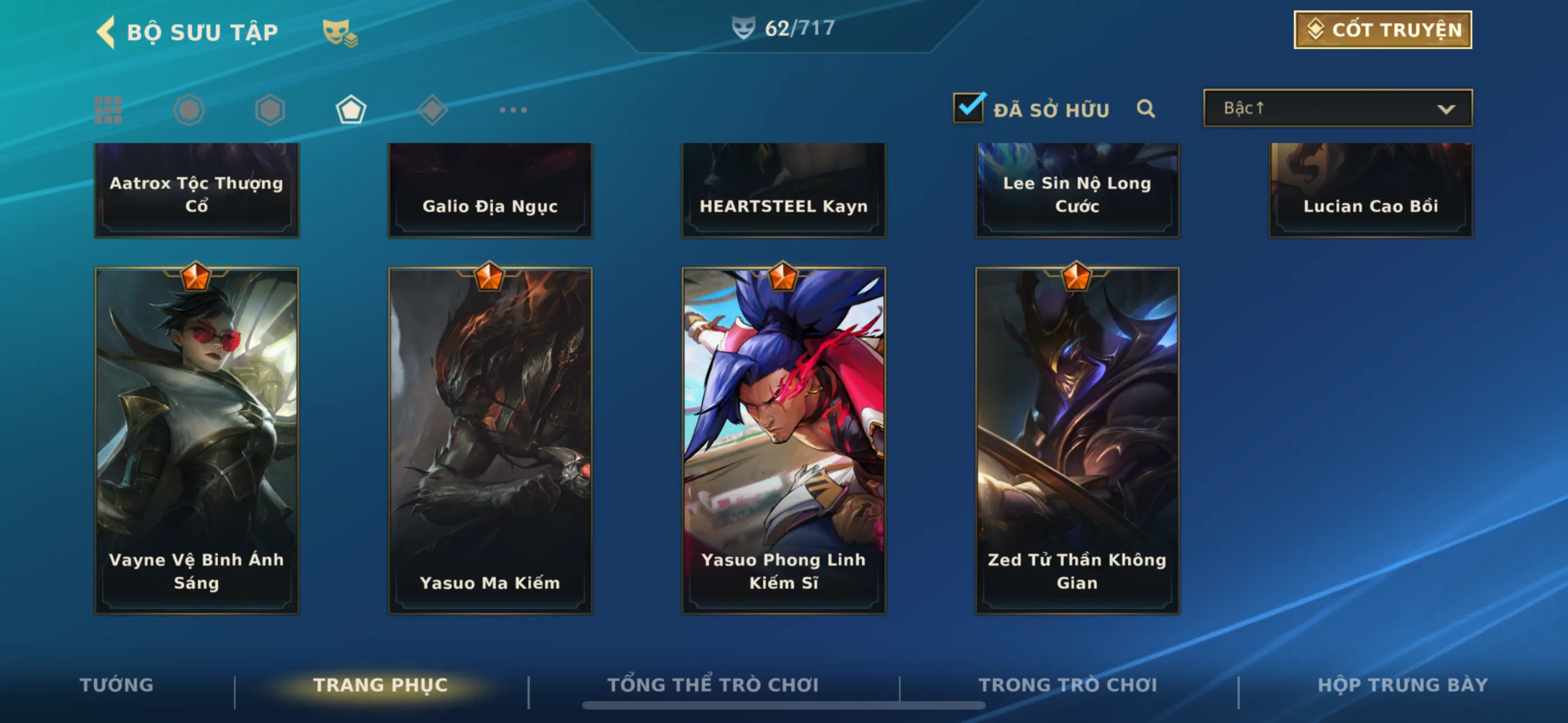 Tổng 185 Skin/6 vàng/27 cam/87 tím.