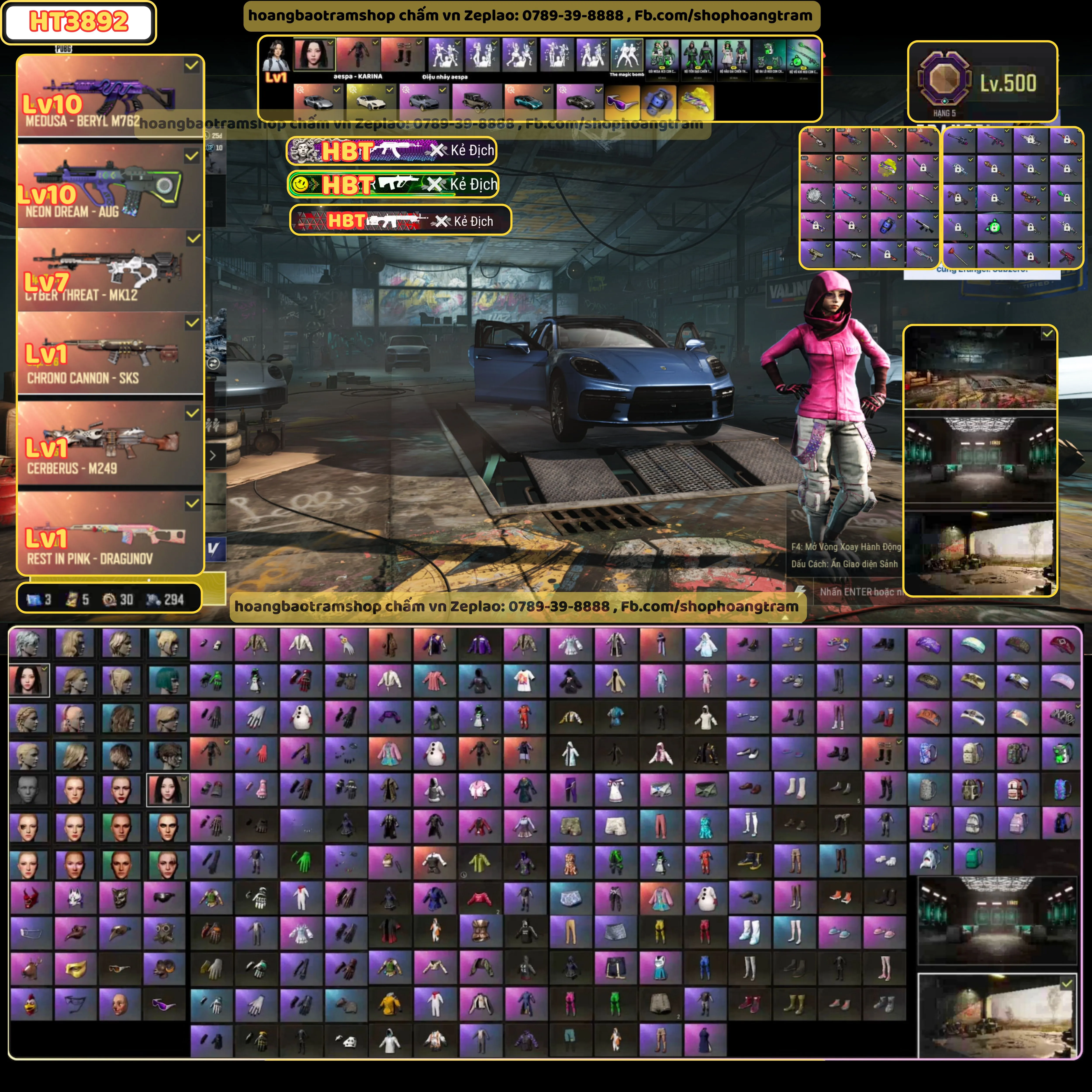 | MÃ ACC HT3892 | COMBO BR RẮN 10, AUG NEON 10, MK CYBER 7 ( ĐỦ BV LÊN 8 ) SKS 1, M249 1, DRA 1, SẢNH PỌT CHƠ, SIÊU XE VAN , SMOKE, SÚNG SMOKE, SET RASH , BẬC 5 ĐỒ ĐẸP SÚNG ỐNG MIÊN MAN |