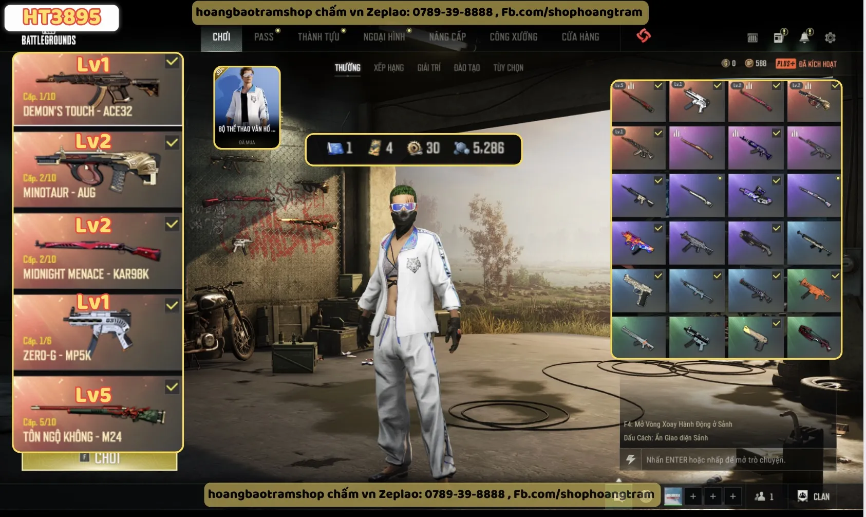 | MÃ ACC HT3895 | M24 NGỘ KHÔNG AE ƠI , AUG TRÂU 2, ACE 1, K98 2, MP5 1, M24 WK 5 |